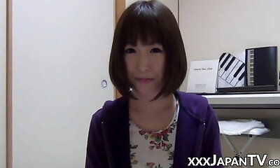 la simpatica ragazza asiatica dai capelli corti, tu asakura, e' presa in giro da un vibratore gigante