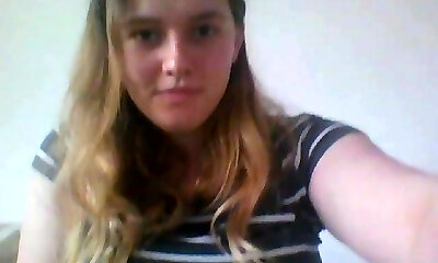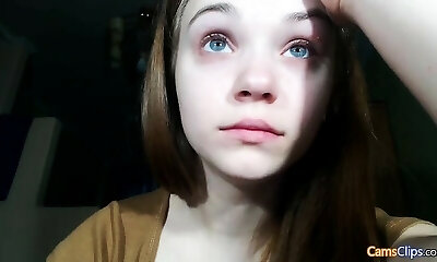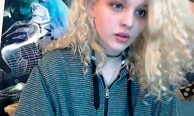 ultra-cute teen bionda toying stretto micio su webcam