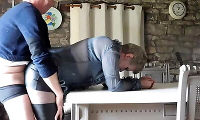 Licking her stocking and pussy